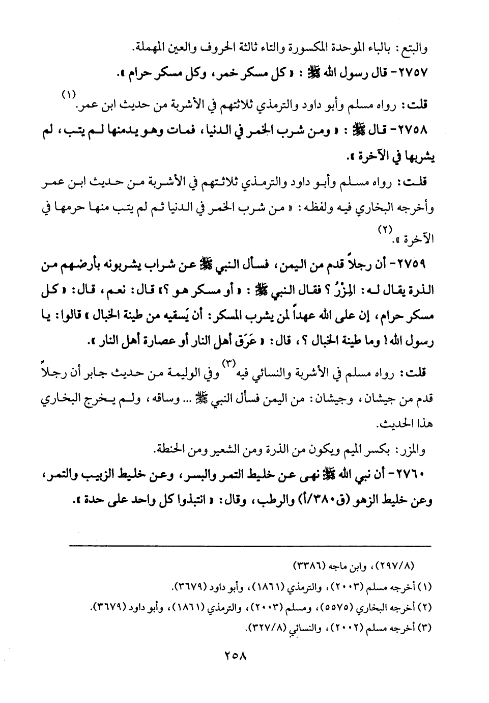 قلت: رواه مسلم وأبو داود والترمذي ثلاثتهم في الأشربة من حديث ابن عمر. (¬1)