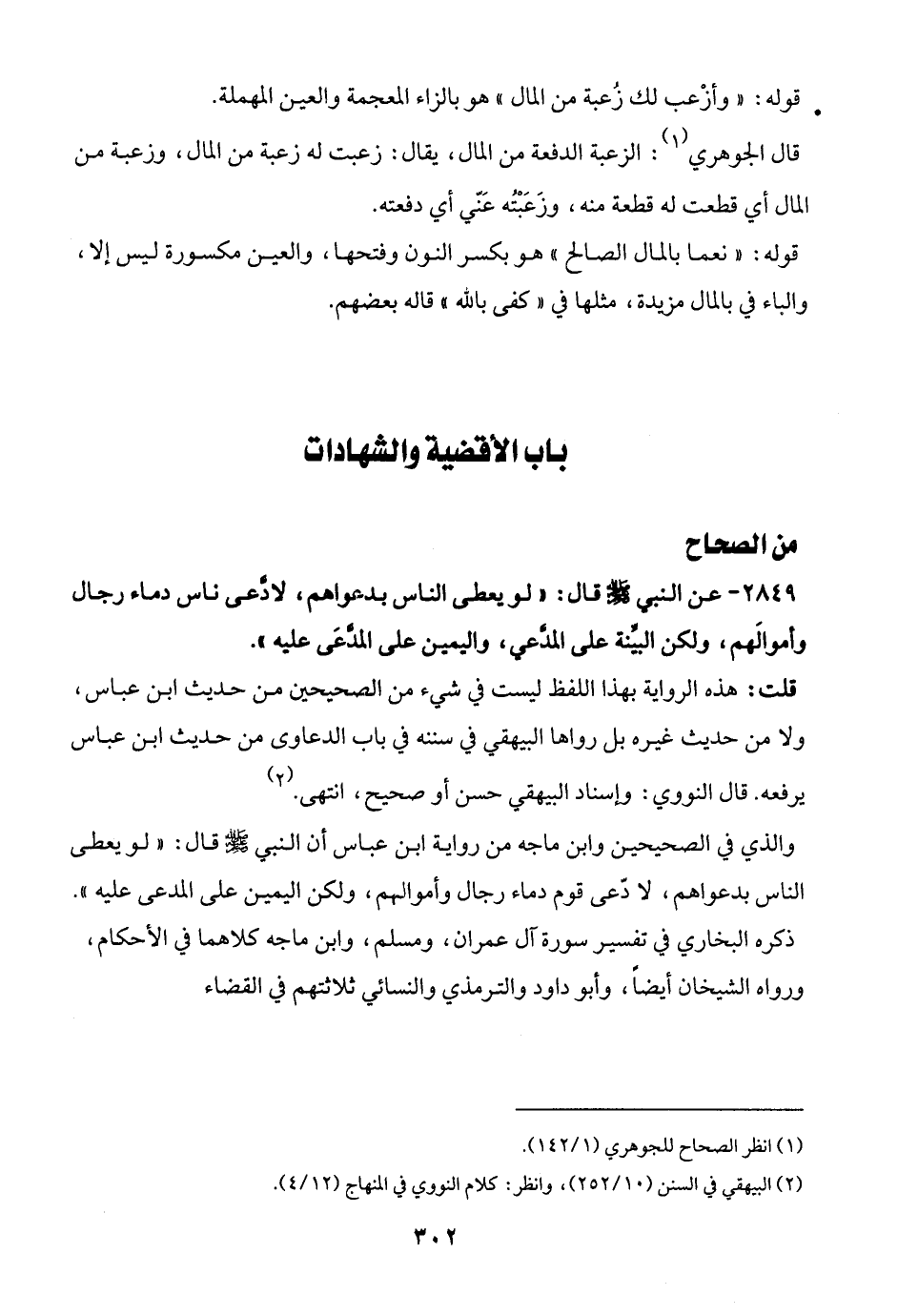 قلت: هذه الرواية بهذا اللفظ ليست في شيء من الصحيحين من حديث ابن عباس، ولا من حديث غيره بل رواها البيهقي في سننه في باب الدعاوى من حديث ابن عباس يرفعه. قال النووي: وإسناد البيهقي حسن أو صحيح، انتهى. (¬2)