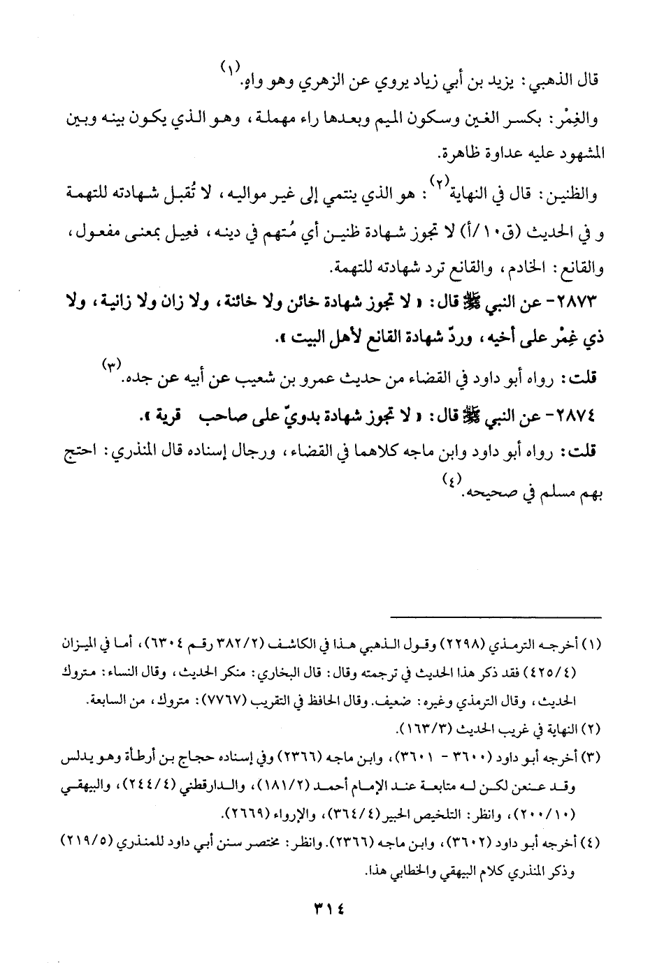 (¬3) أخرجه أبو داود (3600 - 3601)، وابن ماجه (2366) وفي إسناده حجاج بن أرطأة وهو يدلس وقد عنعن لكن له متابعة عند الإِمام أحمد (2/ 181)، والدارقطني (4/ 244)، والبيهقي (10/ 200)، وانظر: التلخيص الحبير (4/ 364)، والإرواء (2669).