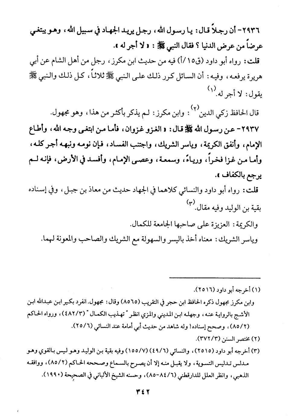 2936 - أن رجلًا قال: يا رسول الله، رجل يريد الجهاد في سبيل الله، وهو يبتغي عرضًا من عرض الدنيا؟ فقال النبي - صلى الله عليه وسلم -: "لا أجر له".