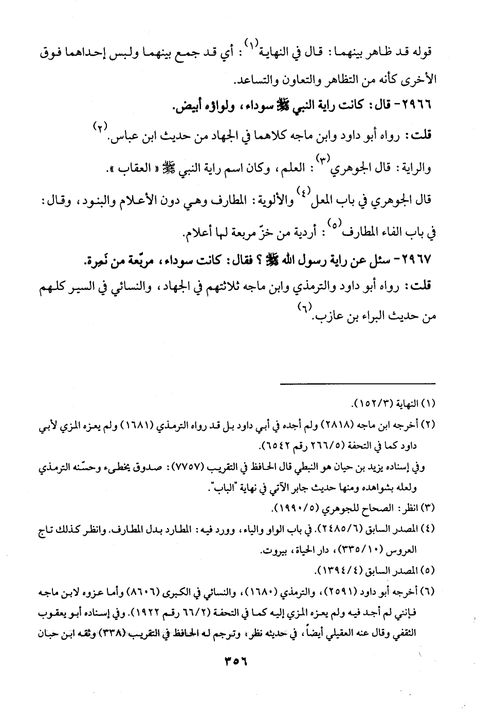 قلت: رواه أبو داود والترمذي وابن ماجه ثلاثتهم في الجهاد، والنسائي في السير كلهم من حديث البراء بن عازب. (¬6)
