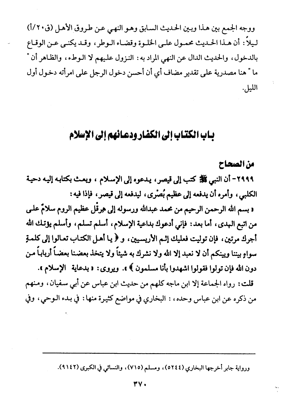 باب الكتاب إلى الكفار ودعائهم إلى الإسلام