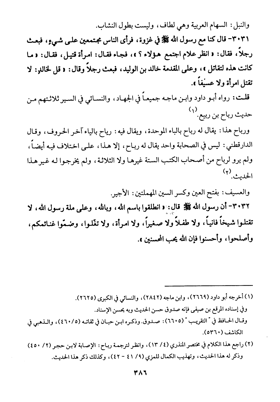 قلت: رواه أبو داود وابن ماجه جميعًا في الجهاد، والنسائي في السير ثلاثتهم من حديث رباح بن ربيع. (¬1)