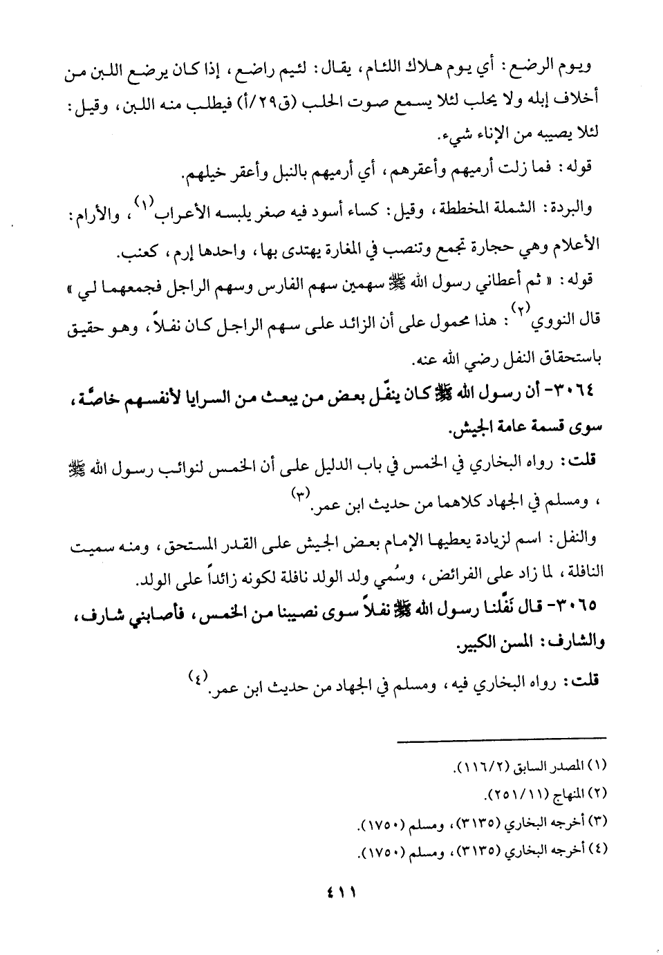3065 - قال نَفَّلنا رسول الله - صلى الله عليه وسلم - نفلًا سوى نصيبنا من الخمس، فأصابني شارف، والشارف: المسن الكبير.