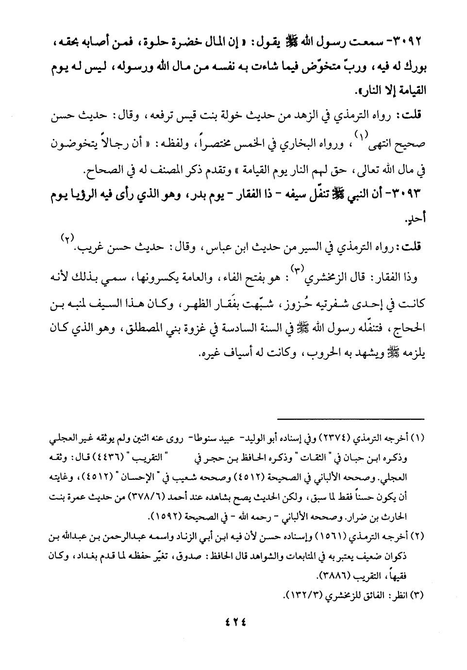 3093 - أن النبي - صلى الله عليه وسلم - تنفّل سيفه -ذا الفقار- يوم بدر، وهو الذي رأى فيه الرؤيا يوم أحدٍ.