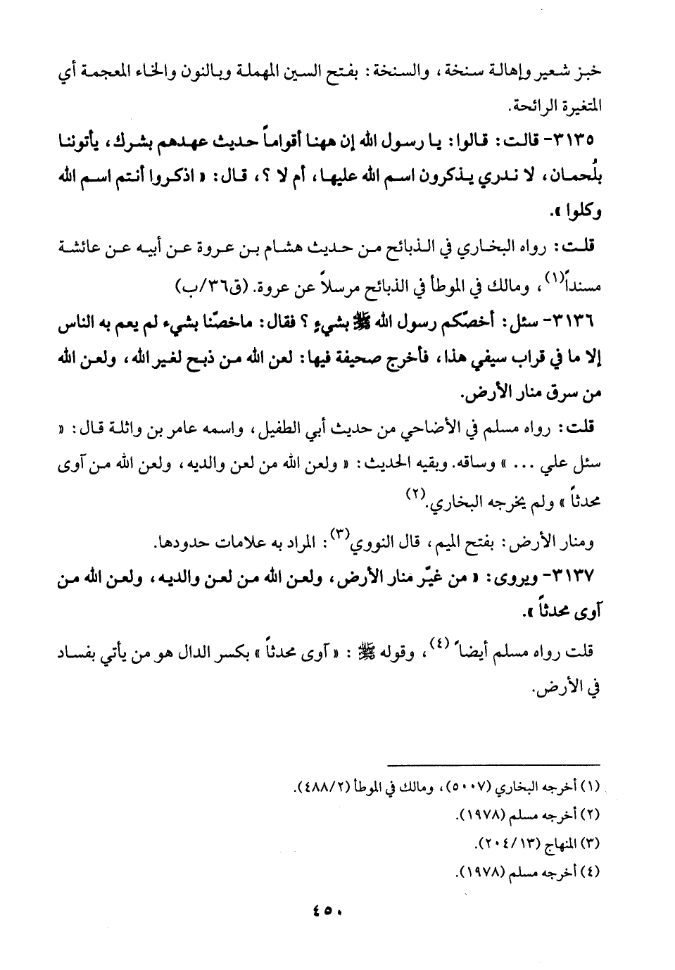 3137 - ويروى: "من غيّر منار الأرض، ولعن الله من لعن والديه، ولعن الله من آوى محدثًا".