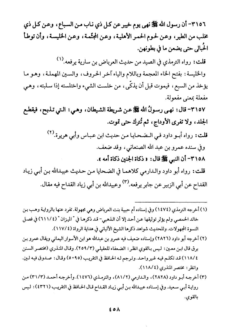 3158 - أن النبي - صلى الله عليه وسلم - قال: "ذكاة الجنين ذكاة أمه".