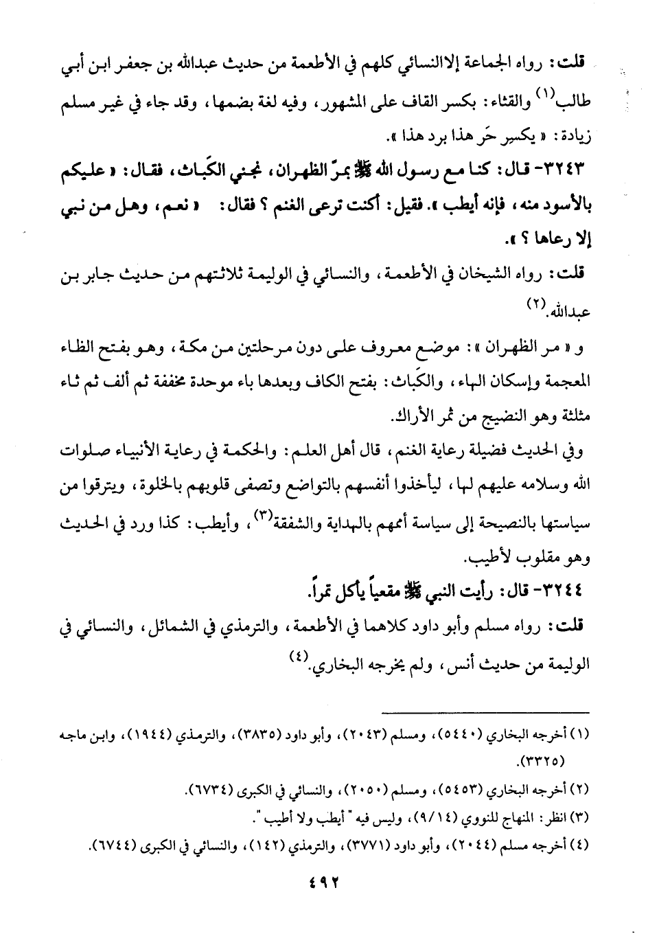 3243 - قال: كنا مع رسول الله - صلى الله عليه وسلم - بمرّ الظهران، نجني الكَباث، فقال: "عليكم بالأسود منه، فإنه أيطب". فقيل: كنت ترعى الغنم؟ فقال: "نعم، وهل من نبي إلا رعاها؟ ".