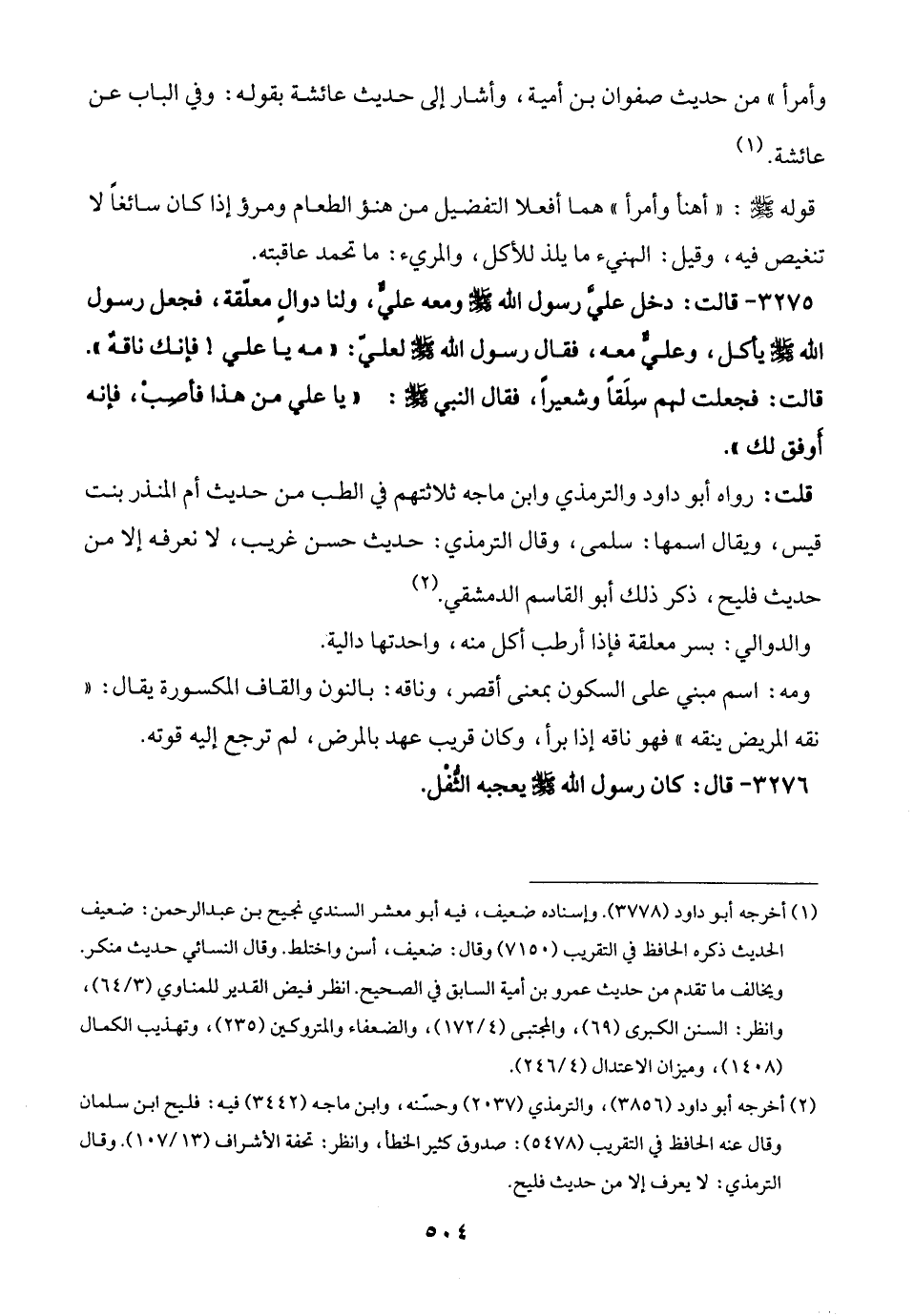 قلت: رواه أبو داود والترمذي وابن ماجه ثلاثتهم في الطب من حديث أم المنذر بنت قيس، ويقال اسمها: سلمى، وقال الترمذي: حديث حسن غريب، لا نعرفه إلا من حديث فليح، ذكر ذلك أبو القاسم الدمشقي. (¬2)