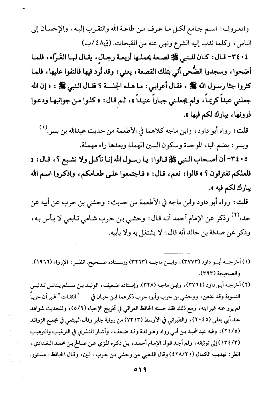 قلت: رواه أبو داود، وابن ماجه كلاهما في الأطعمة من حديث عبد الله بن بسر. (¬1)