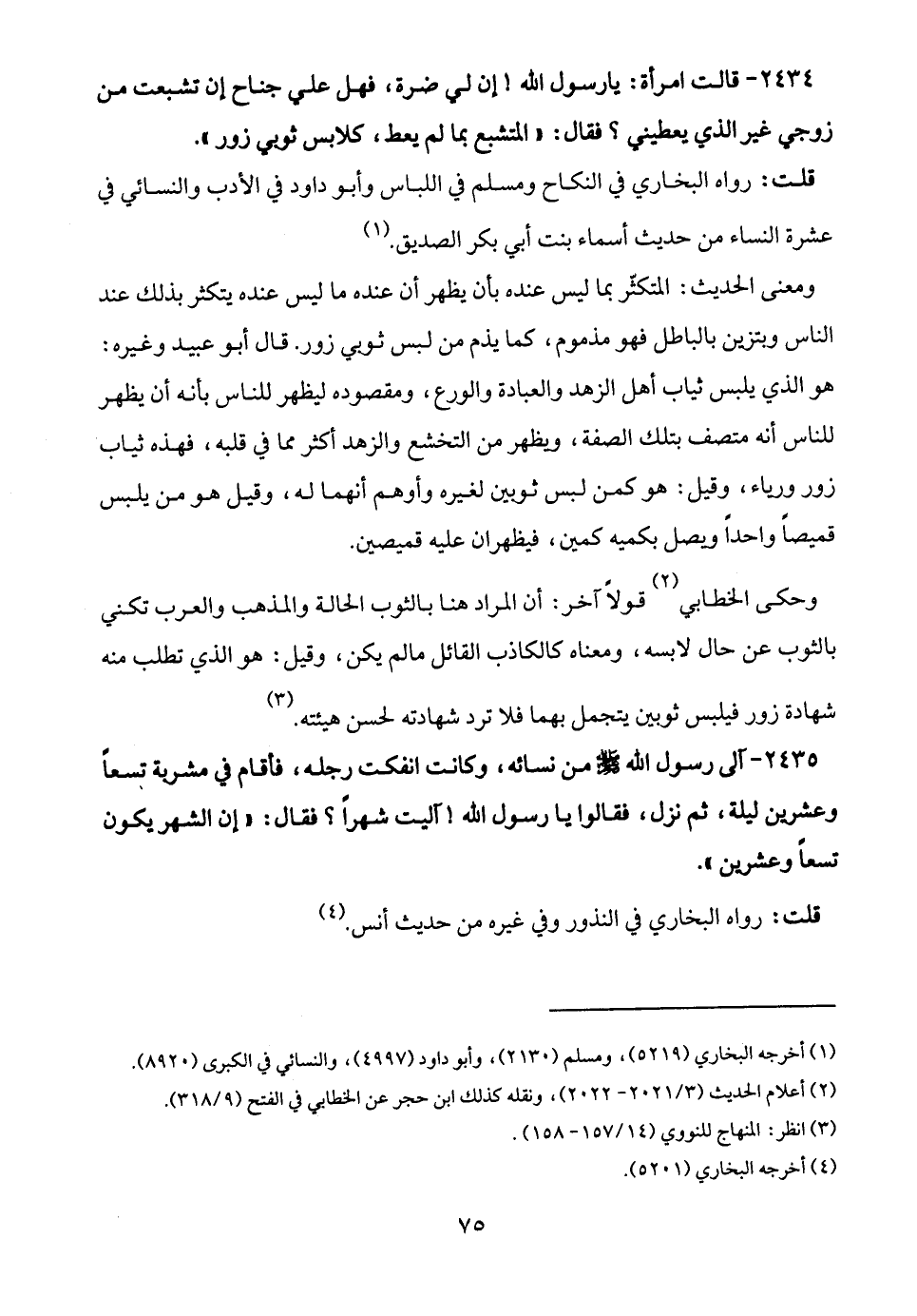 2434 - قالت امرأة: يا رسول الله! إن لي ضرة، فهل علي جناح إن تشبعت من زوجي غير الذي يعطيني؟ فقال: "المتشبع بما لم يعط، كلابس ثوبي زور".