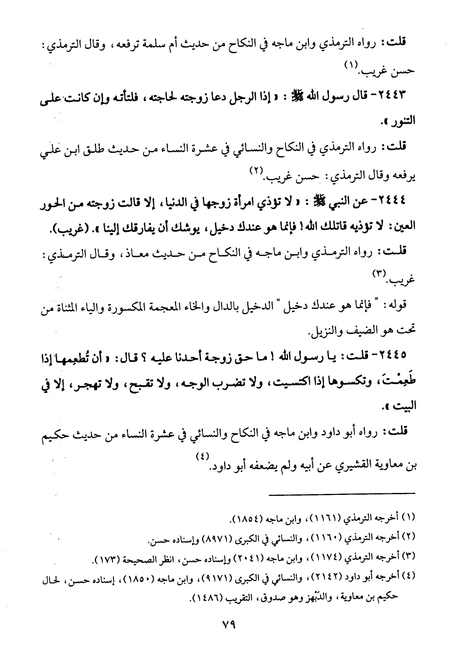 قلت: رواه أبو داود وابن ماجه في النكاح والنسائي في عشرة النساء من حديث حكيم بن معاوية القشيري عن أبيه ولم يضعفه أبو داود. (¬4)