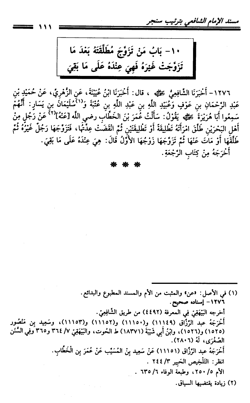 كتاب مسند الشافعي - ترتيب سنجر (اسم الجزء: 3)