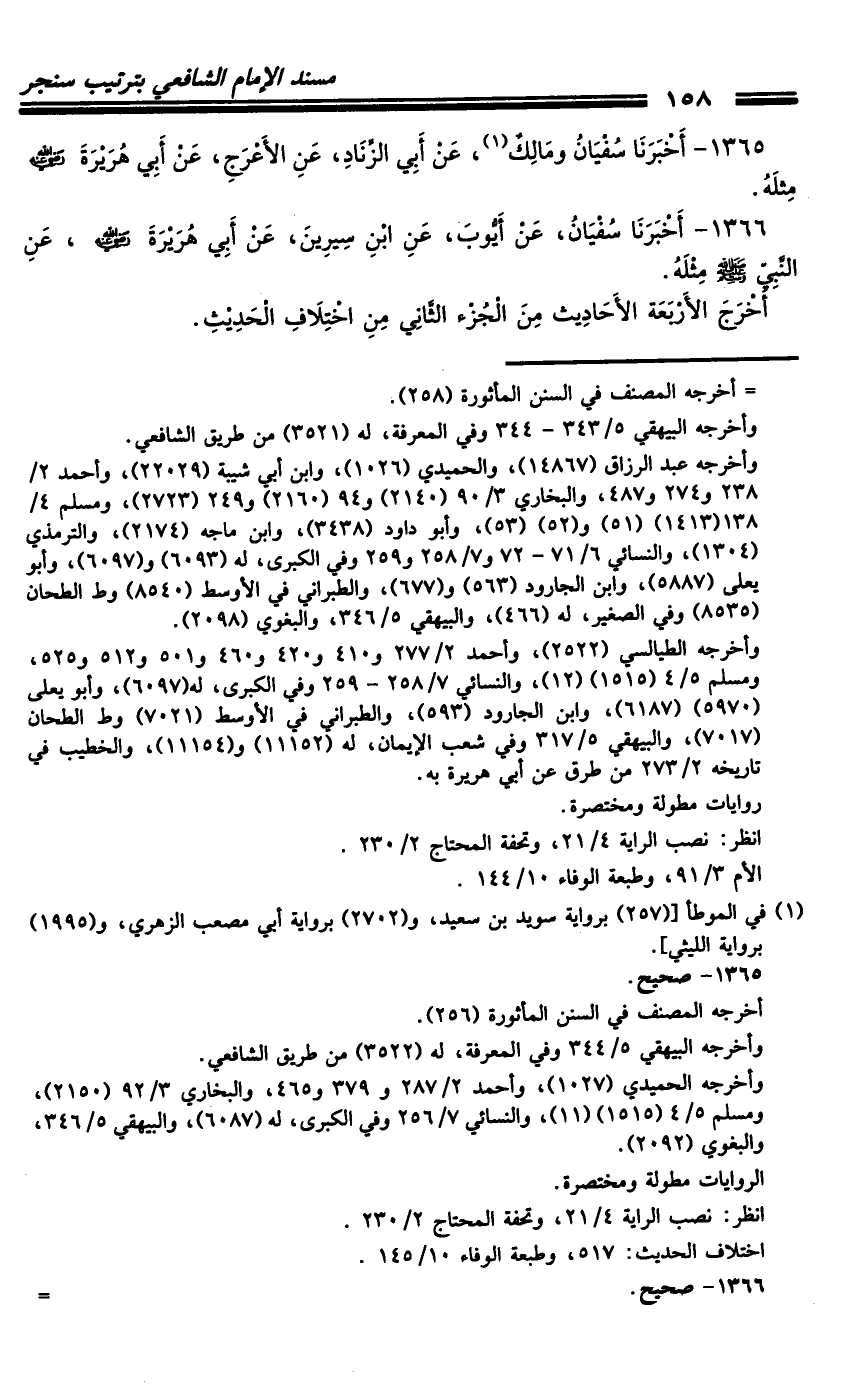 كتاب مسند الشافعي - ترتيب سنجر (اسم الجزء: 3)