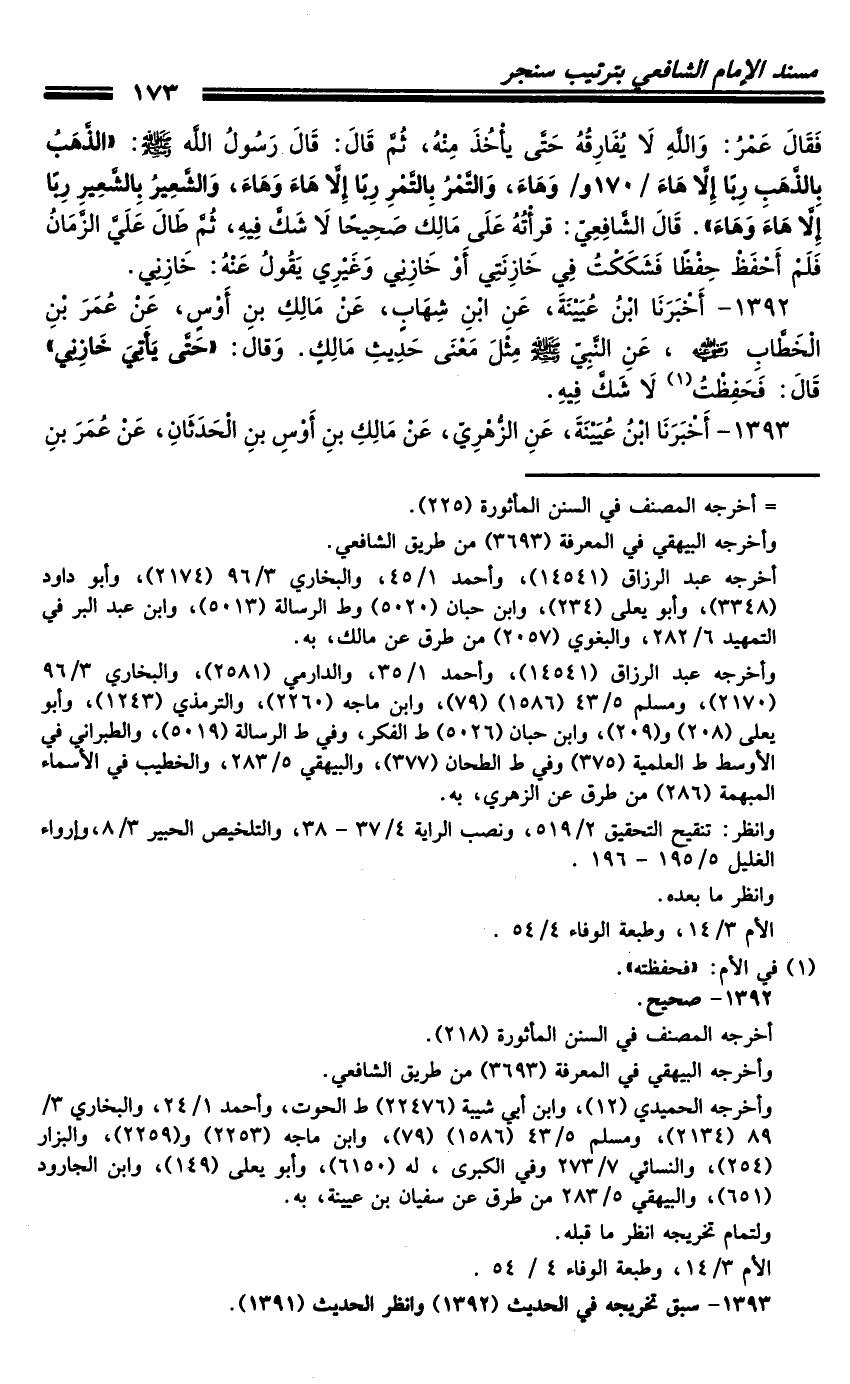 1393 - أَخْبَرَنَا ابْنُ عُيَيْنَةَ، عَنِ الزُّهْرِيِّ، عَنْ مَالِكِ بْنِ أَوْسِ بْنِ الْحَدَثَانِ، عَنْ عُمَرَ بْنِ