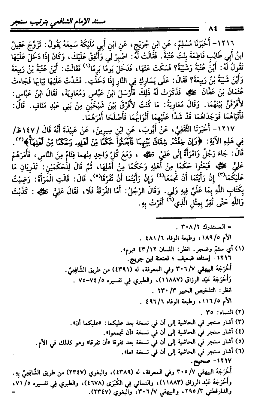 كتاب مسند الشافعي - ترتيب سنجر (اسم الجزء: 3)