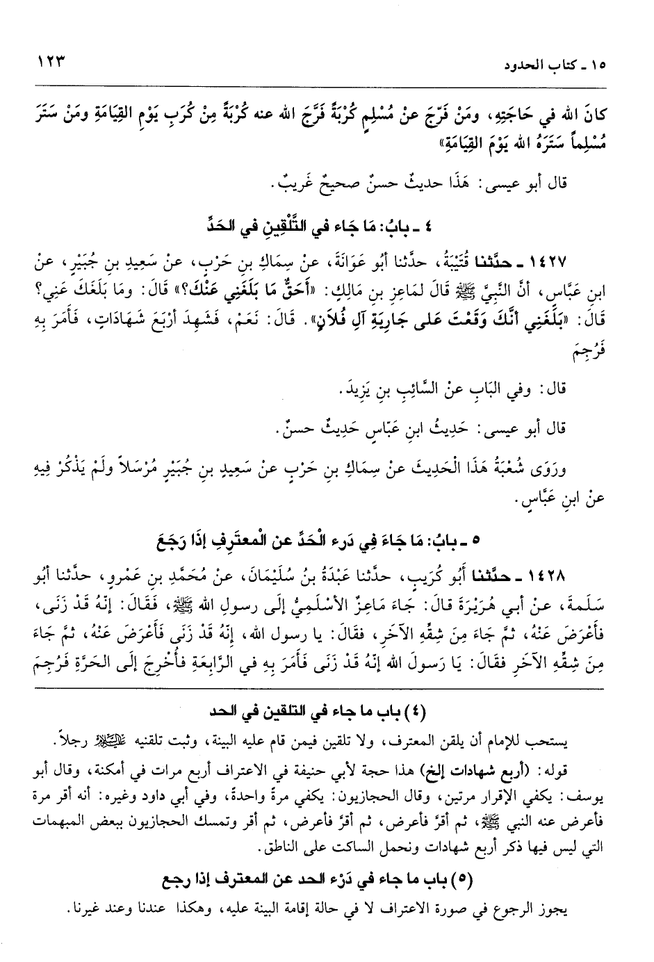 باب ما جاء في درء الحد عن المعترف إذا رجع