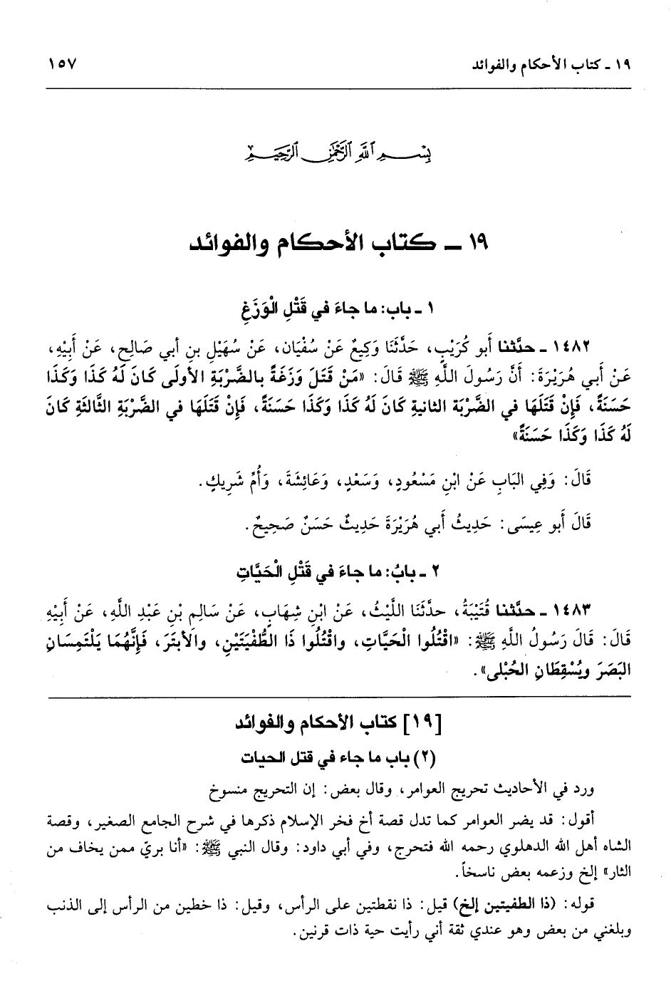 أقول: قد يضر العوامر كما تدل قصة أخ فخر الإسلام ذكرها في شرح الجامع الصغير، وقصة الشاه أهل الله الدهلوي رحمه الله فتحرج، وفي أبي داود: وقال النبي - صَلَّى اللهُ عَلَيْهِ وَسَلَّمَ -: «أنا بريّ ممن يخاف من الثار» إلخ وزعمه بعض ناسخاً.