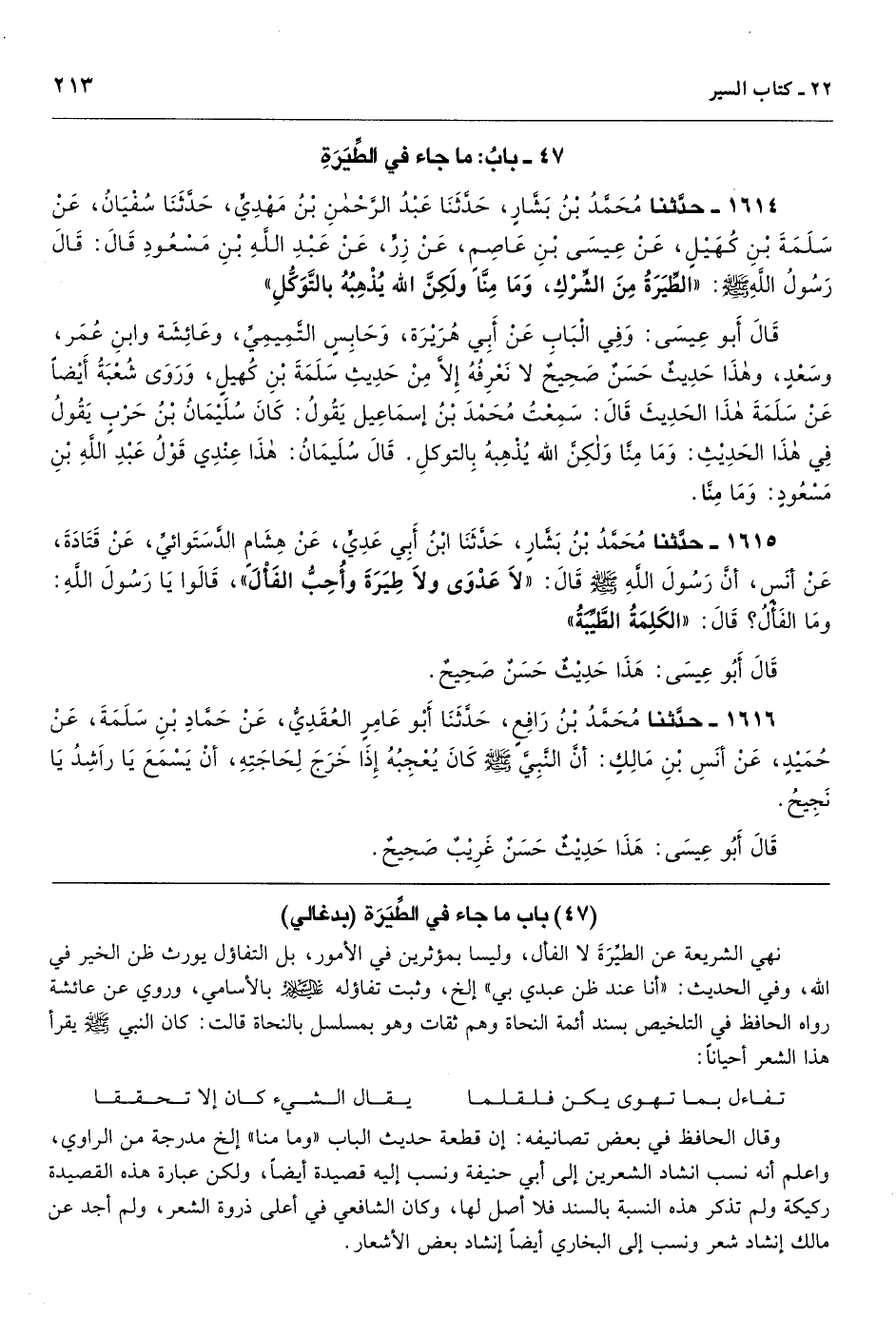 باب ما جاء في الطِّيَرَة (بدغالي)