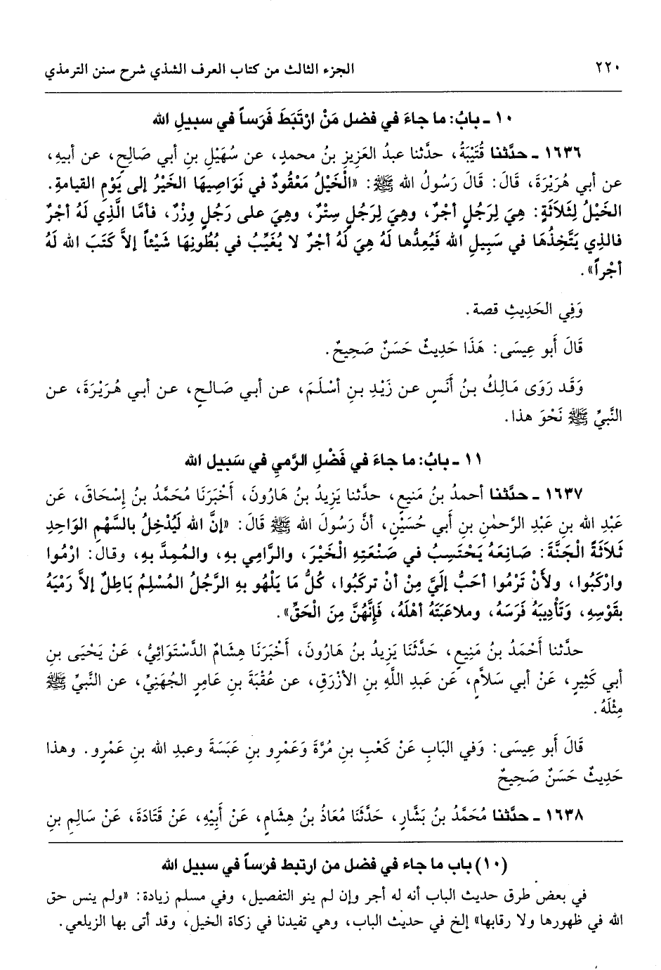 باب ما جاء في فضل من ارتبط فرسا في سبيل الله