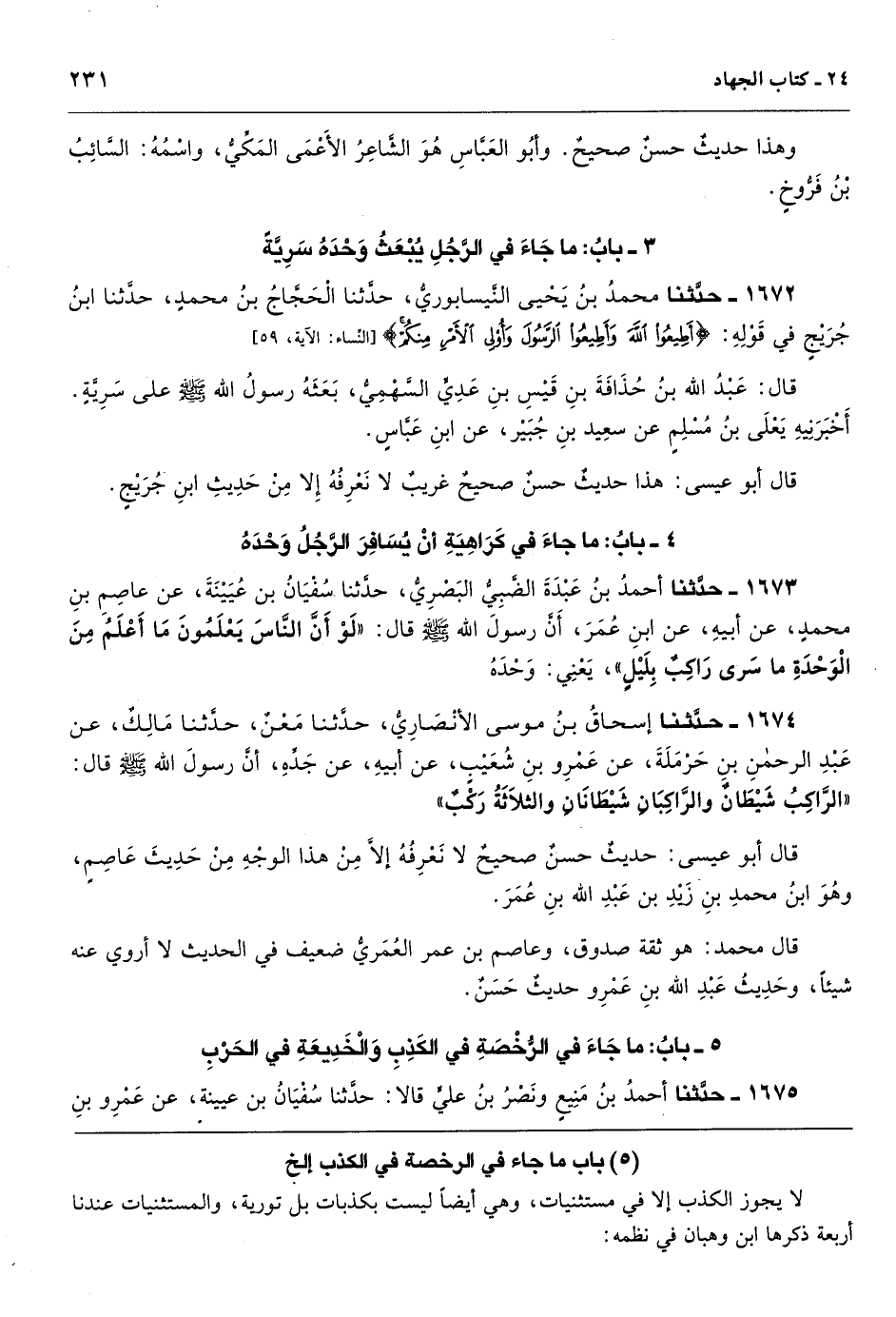 [1675] لا يجوز الكذب إلا في مستثنيات، وهي أيضاً ليست بكذبات بل تورية، والمستثنيات عندنا أربعة ذكرها ابن وهبان في نظمه: