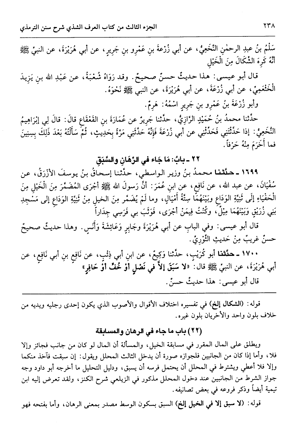 [1699] ويطلق على المال المقرر في مسابقة الخيل، والمسألة أن المال لو كان من جانب فجائز وإلا فلا، وأما إذا كان من الجانبين فلجوازه صورة أن يدخل الثالث المحلل ويقول: إن سبقت فآخذ منكما وإلا فلا أعطي ويشترط في المحلل أن يحتمل فرسه أن يسبق، ودليل التحليل ما أخرجه أبو داود وجه جواز الشرط من الجانبين عند دخول المحلل مذكور في الزيلعي شرح الكنز، ولقد تعرض إليه ابن تيمية أيضاً وذكر فروعه في بعض تصانيفه.