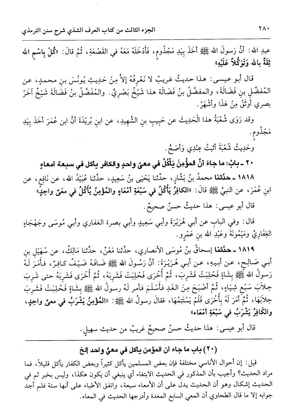 باب ما جاء أن المؤمن يأكل في معيّ واحد إلخ