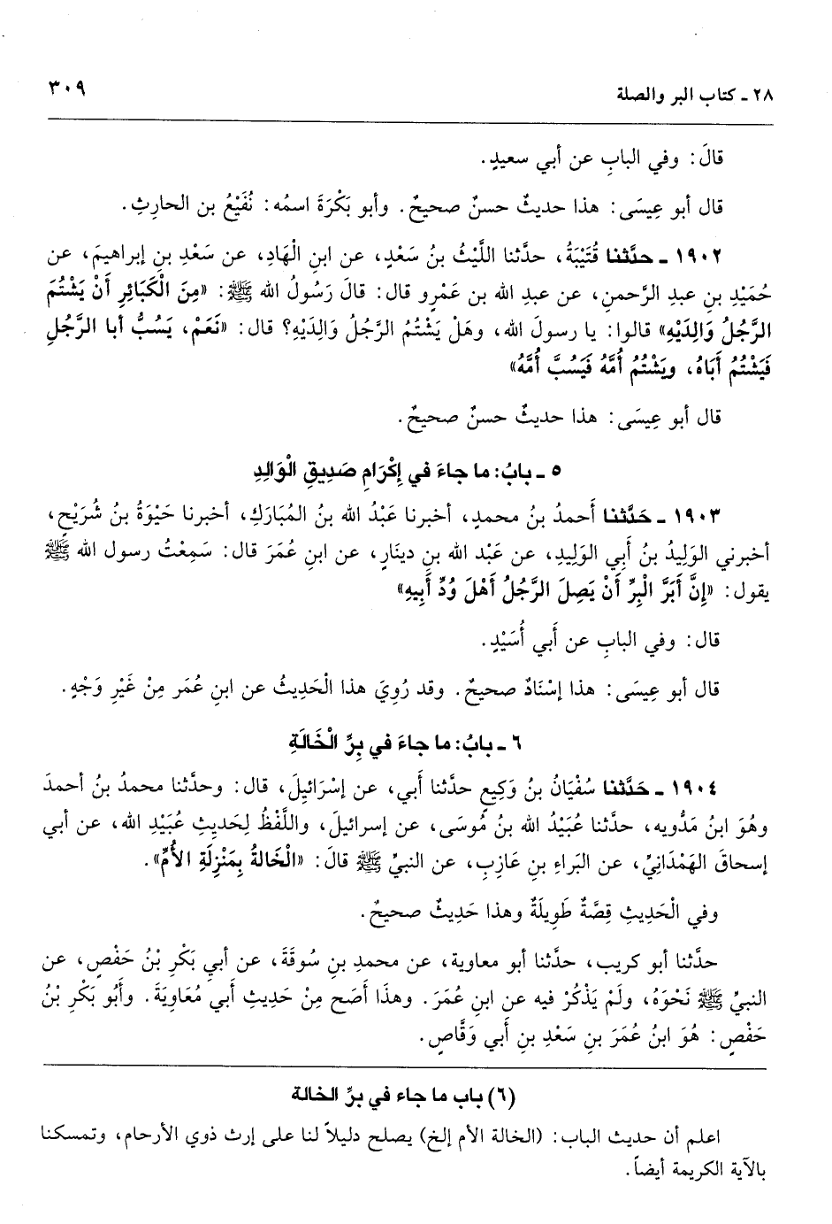 [1904] اعلم أن حديث الباب: (الخالة الأم إلخ) يصلح دليلاً لنا على إرث ذوي الأرحام، وتمسكنا بالآية الكريمة أيضاً.