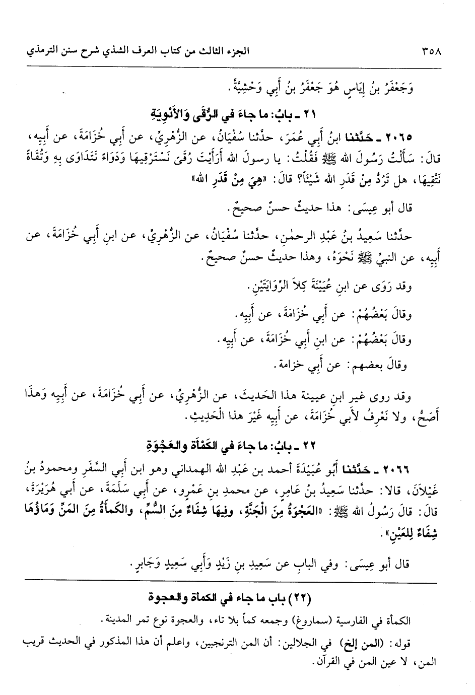 [2066] الكمأة في الفارسية (سماروغ) وجمعه كماً بلا تاء، والعجوة نوع تمر المدينة.