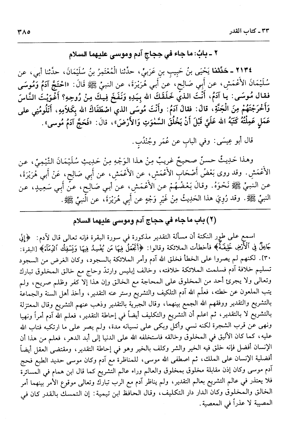 باب ما جاء في حجاج آدم وموسى عليهما السلام