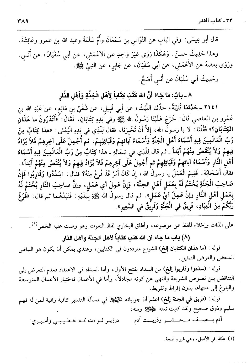 باب ما جاء أن الله كتب كتابا لأهل الجنة وأهل النار