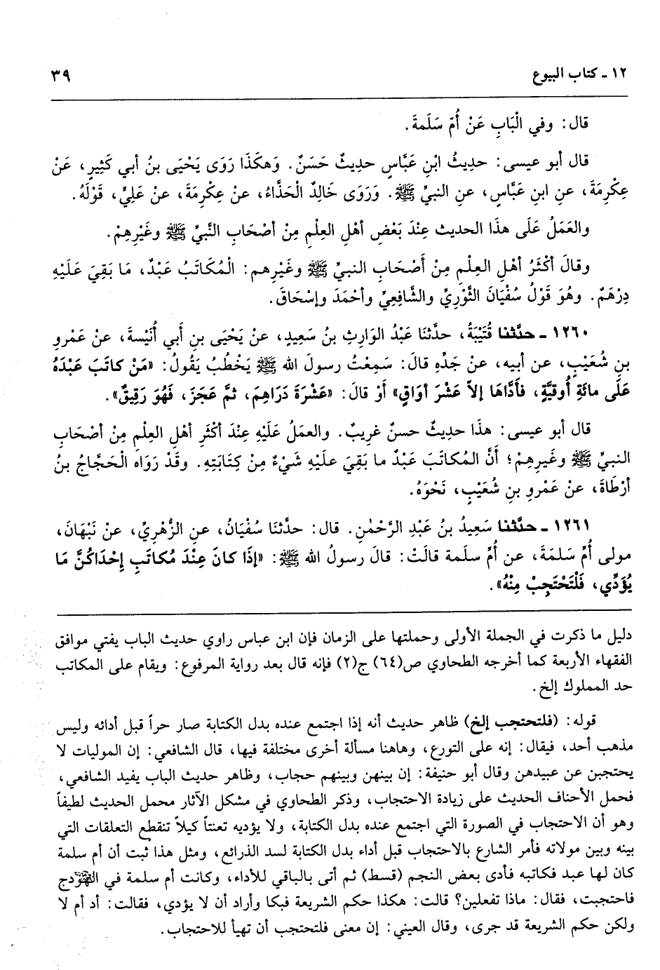 دليل ما ذكرت في الجملة الأولى وحملتها على الزمان فإن ابن عباس راوي حديث الباب يفتي موافق الفقهاء الأربعة كما أخرجه الطحاوي ص (64) ج (2) فإنه قال بعد رواية المرفوع: ويقام على المكاتب حد المملوك إلخ.