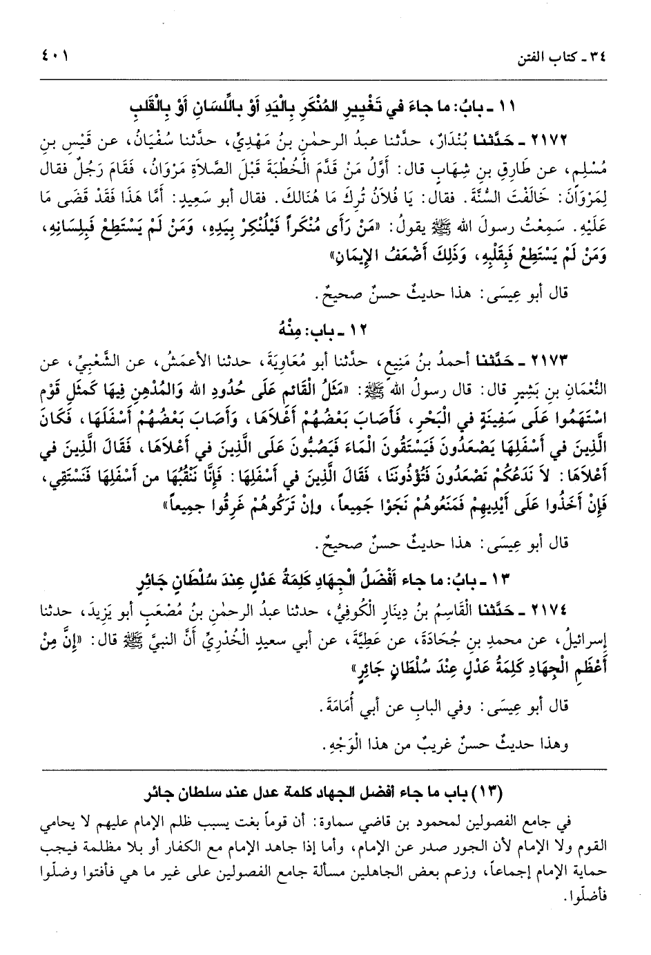 باب ما جاء أفضل الجهاد كلمة عدل عند سلطان جائر