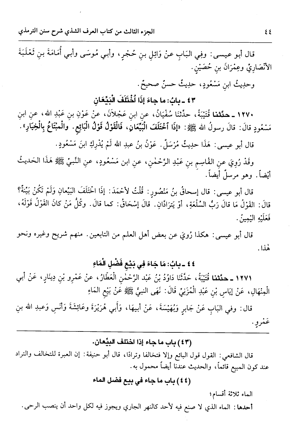 باب ما جاء في بيع فضل الماء