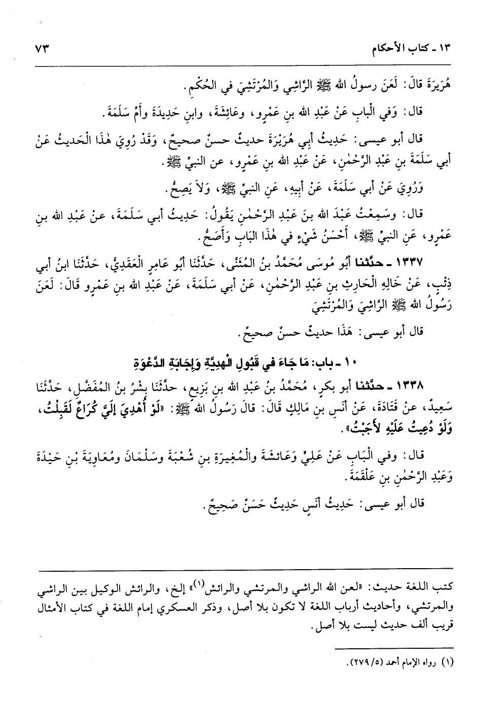 كتب اللغة حديث: «لعن الله الراشي والمرتشي والرائش» إلخ، والرائش الوكيل بين الراشي والمرتشي، وأحاديث أرباب اللغة لا تكون بلا أصل، وذكر العسكري إمام اللغة في كتاب الأمثال قريب ألف حديث ليست بلا أصل.