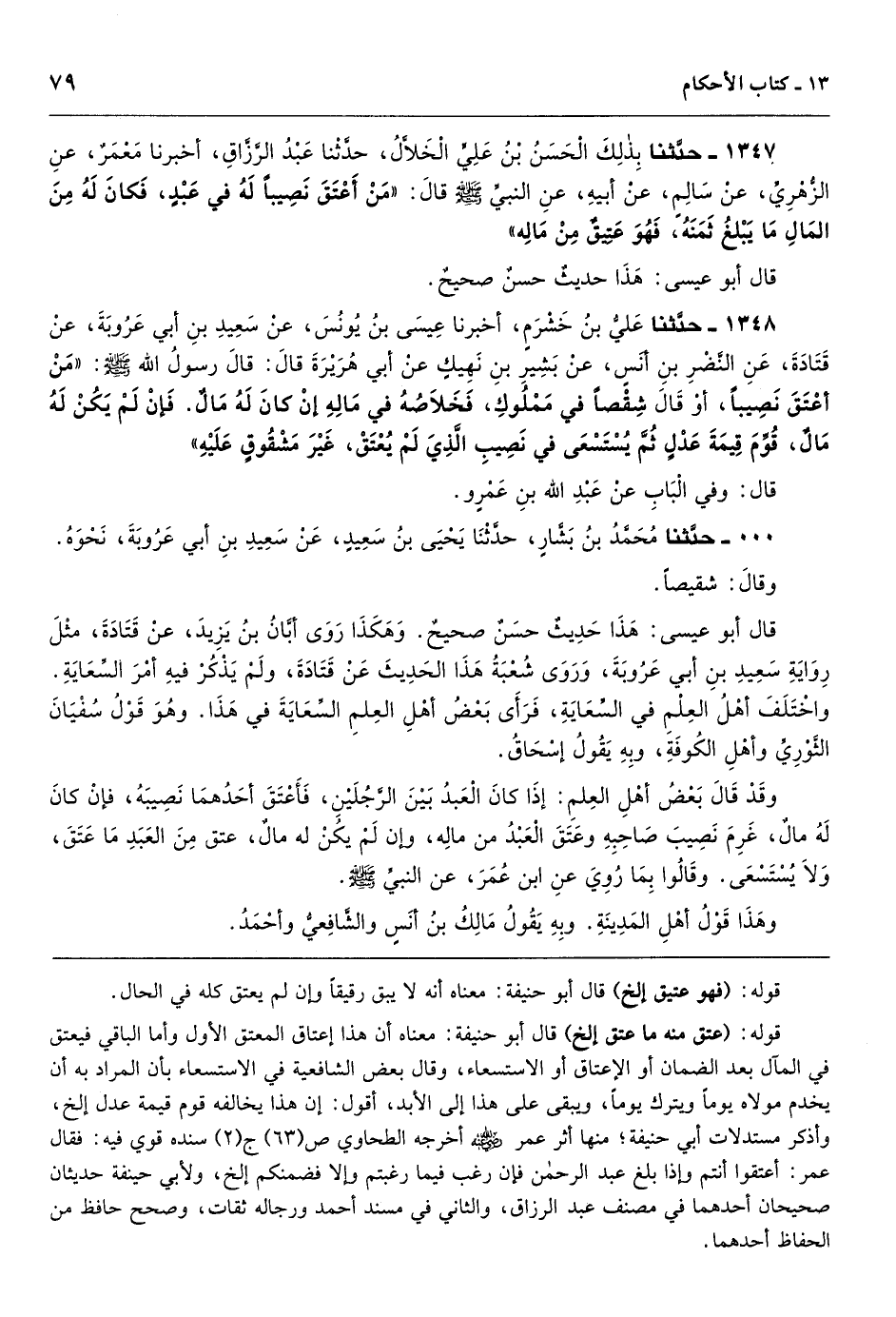 قوله: (عتق منه ما عتق إلخ) قال أبو حنيفة: معناه أن هذا إعتاق المعتق الأول وأما الباقي فيعتق في المآل بعد الضمان أو الإعتاق أو الاستسعاء، وقال بعض الشافعية في الاستسعاء بأن المراد به أن يخدم مولاه يوماً ويترك يوماً، ويبقى على هذا إلى الأبد، أقول: إن هذا يخالفه قوم قيمة عدل إلخ، وأذكر مستدلات أبي حنيفة؛ منها أثر عمر أخرجه الطحاوي ص (63) ج (2) سنده قوي فيه: فقال عمر: أعتقوا أنتم وإذا بلغ عبد الرحمن فإن رغب فيما رغبتم وإلا فضمنكم إلخ، ولأبي حينفة حديثان صحيحان أحدهما في مصنف عبد الرزاق، والثاني في مسند أحمد ورجاله ثقات، وصحح حافظ من الحفاظ أحدهما.