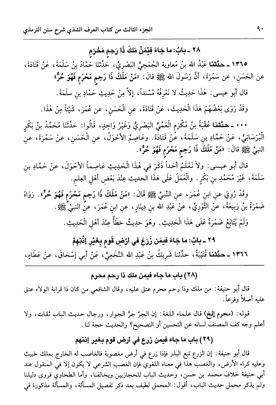 [1366] قال أبو حنيفة: إن الزرع تبع البذر فإذا زرع في أرض مغصوبة فالغاصب له الخارج بملك خبيث وعليه كراء الأرض، والغصب هذا في معناه اللغوي فإن الغصب الشرعي لا يكون إلا في المنقول عند أبي حنيفة خلاف محمد بن حسن، وحديث الباب للحجازيين ويخالفنا، وأما الطحاوي فروى دليلنا ولم يذكر محمل حديث الباب، أقول: المحمل لطيف بعد ذكر تفصيل المسألة، والمسألة مذكورة في