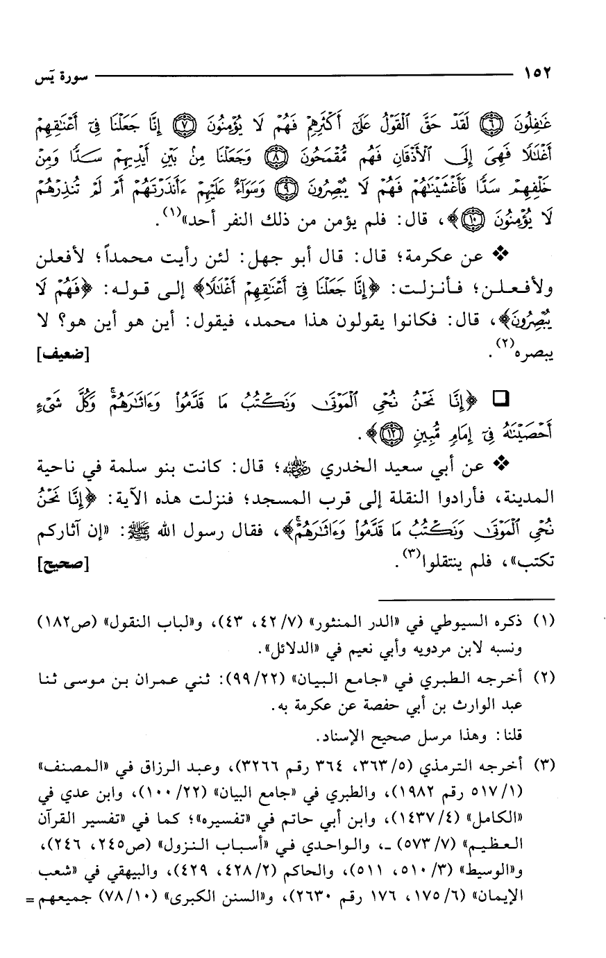 (¬3) أخرجه الترمذي (5/ 363، 364 رقم 3266)، وعبد الرزاق في "المصنف" (1/ 517 رقم 1982)، والطبري في "جامع البيان" (22/ 100)، وابن عدي في "الكامل" (4/ 1437)، وابن أبي حاتم في "تفسيره"؛ كما في "تفسير القرآن العظيم" (7/ 573) -، والواحدي في "أسباب النزول" (ص 245، 246)، و"الوسيط" (3/ 510، 511)، والحاكم (2/ 428، 429)، والبيهقي في "شعب الإيمان" (6/ 175، 176 رقم 2630)، و"السنن الكبرى" (10/ 78) جميعهم =