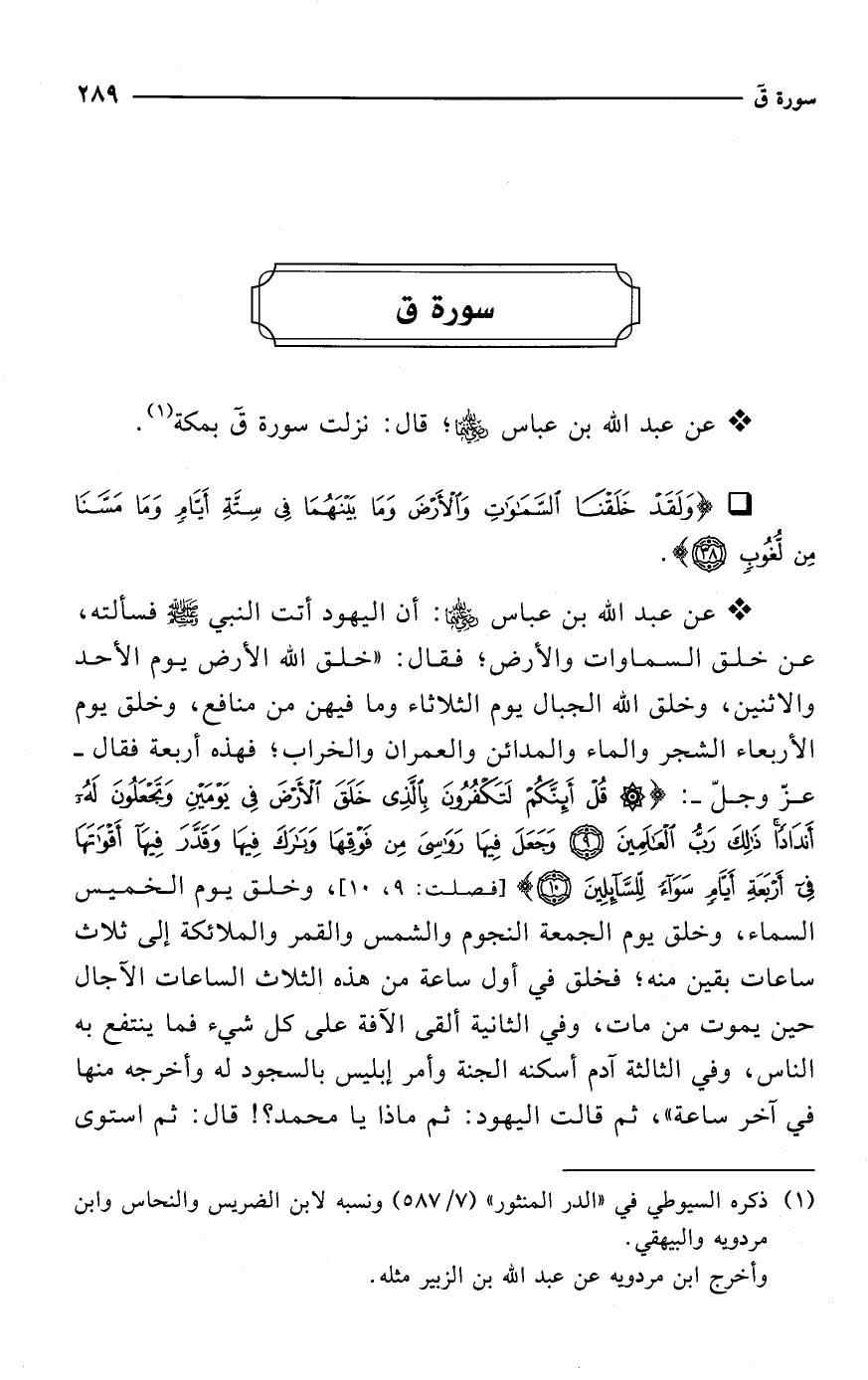 * عن عبد الله بن عباس -رضي الله عنهما-؛ قال: نزلت سورة ق بمكة (¬1).