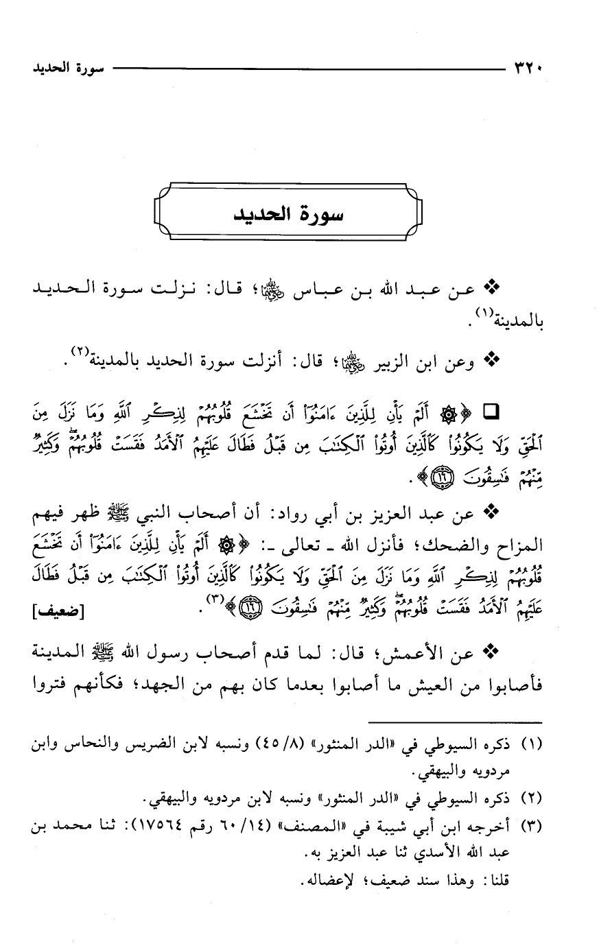 * وعن ابن الزبير -رضي الله عنهما-؛ قال: أنزلت سورة الحديد بالمدينة (¬2).