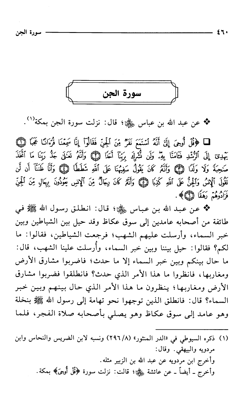 * عن عبد الله بن عباس -رضي الله عنهما-؛ قال: نزلت سورة الجن بمكة (¬1).