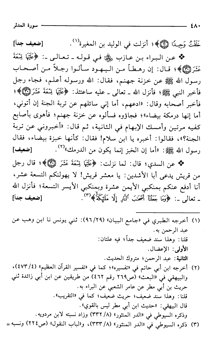 خَلَقْتُ وَحِيدًا (11)}؛ أنزلت في الوليد بن المغيرة (¬1). [ضعيف جداً]