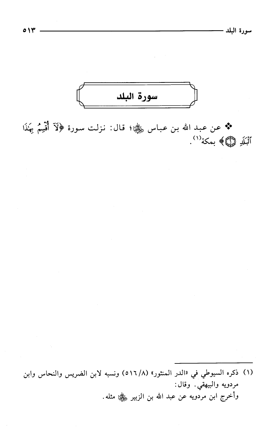 * عن عبد الله بن عباس -رضي الله عنهما-؛ قال: نزلت سورة {لَا أُقْسِمُ بِهَذَا الْبَلَدِ (1)} بمكة (¬1).