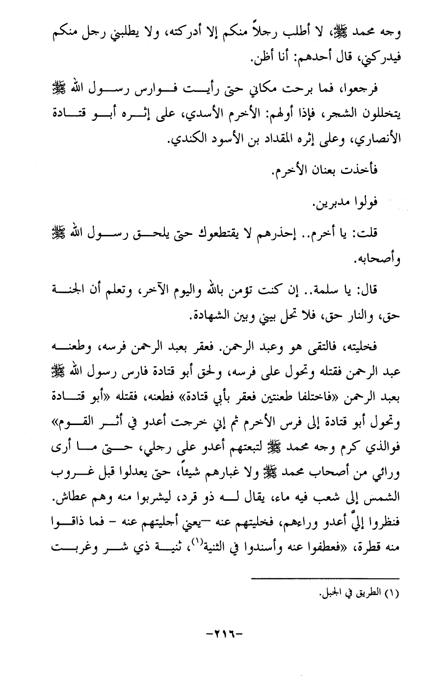 قلت: يا أخرم .. إحذرهم لا يقتطعوك حتى يلحق رسول الله - صلى الله عليه وسلم - وأصحابه.