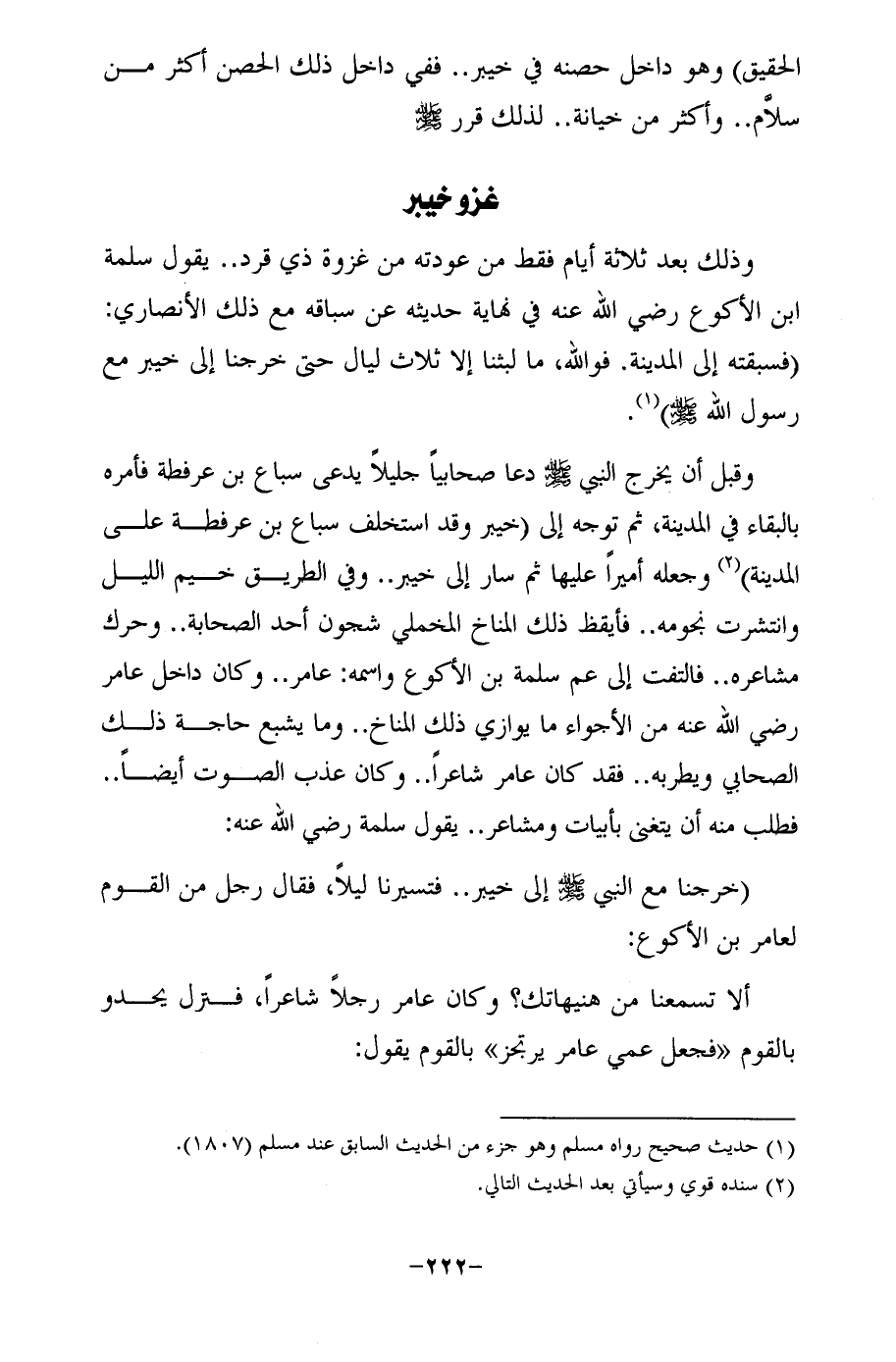 (خرجنا مع النبي - صلى الله عليه وسلم - إلى خيبر .. فتسيرنا ليلًا، فقال رجل من القوم لعامر بن الأكوع: