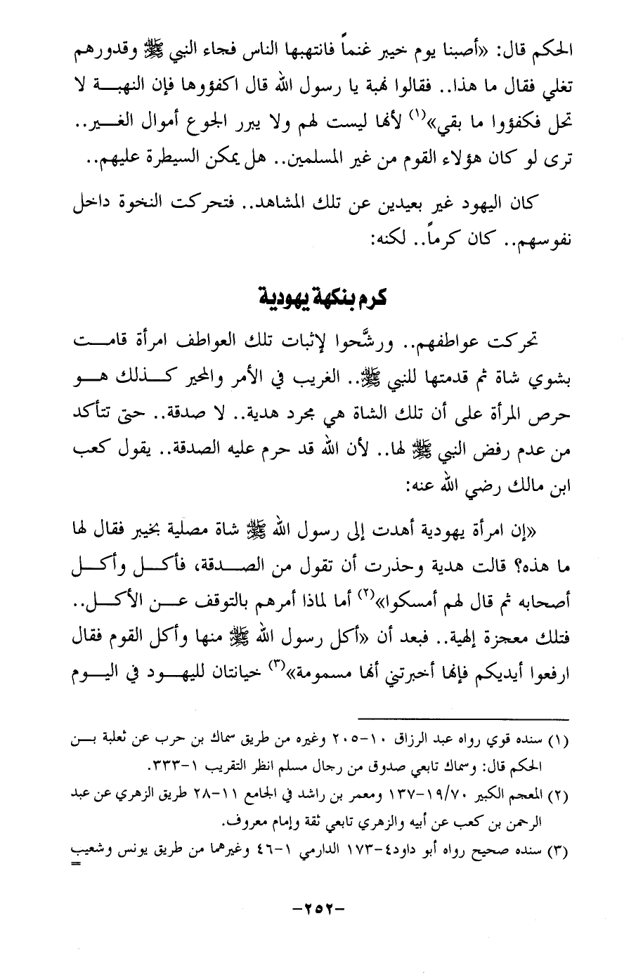 "إن امرأة يهودية أهدت إلى رسول الله - صلى الله عليه وسلم - شاة مصلية بخيبر فقال لها ما هذه؟ قالت هدية وحذرت أن تقول من الصدقة، فأكل وأكل أصحابه ثم قال لهم أمسكوا" (¬2) أما لماذا أمرهم بالتوقف عن الأكل .. فتلك معجزة إلهية .. فبعد أن "أكل رسول الله - صلى الله عليه وسلم - منها وأكل القوم فقال ارفعوا أيديكم فإنها أخبرتني أنها مسمومة" (¬3) خيانتان لليهود في اليوم