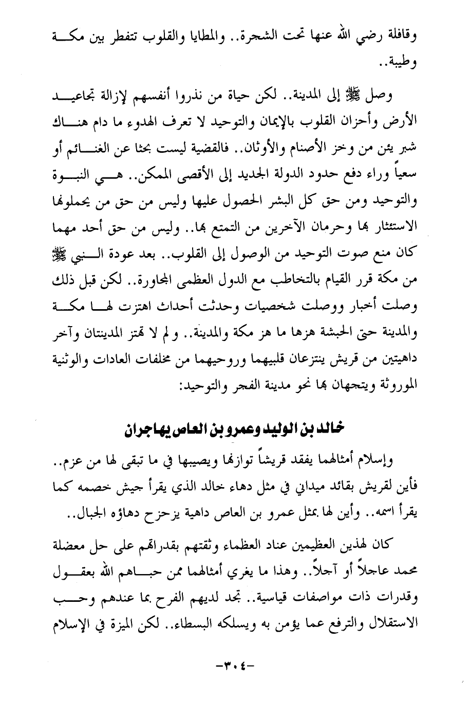 وإسلام أمثالهما يفقد قريشًا توازنها ويصيبها في ما تبقى لها من عزم .. فأين لقريش بقائد ميداني في مثل دهاء خالد الذي يقرأ جيش خصمه كما يقرأ اسمه .. وأين لها بمثل عمرو بن العاص داهية يزحزح دهاؤه الجبال ..