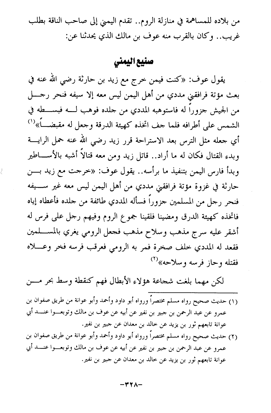 من بلاده للمساهمة في منازلة الروم .. تقدم اليمني إلى صاحب الناقة بطلب غريب .. وكان بالقرب منه عوف بن مالك الذي يحدثنا عن: