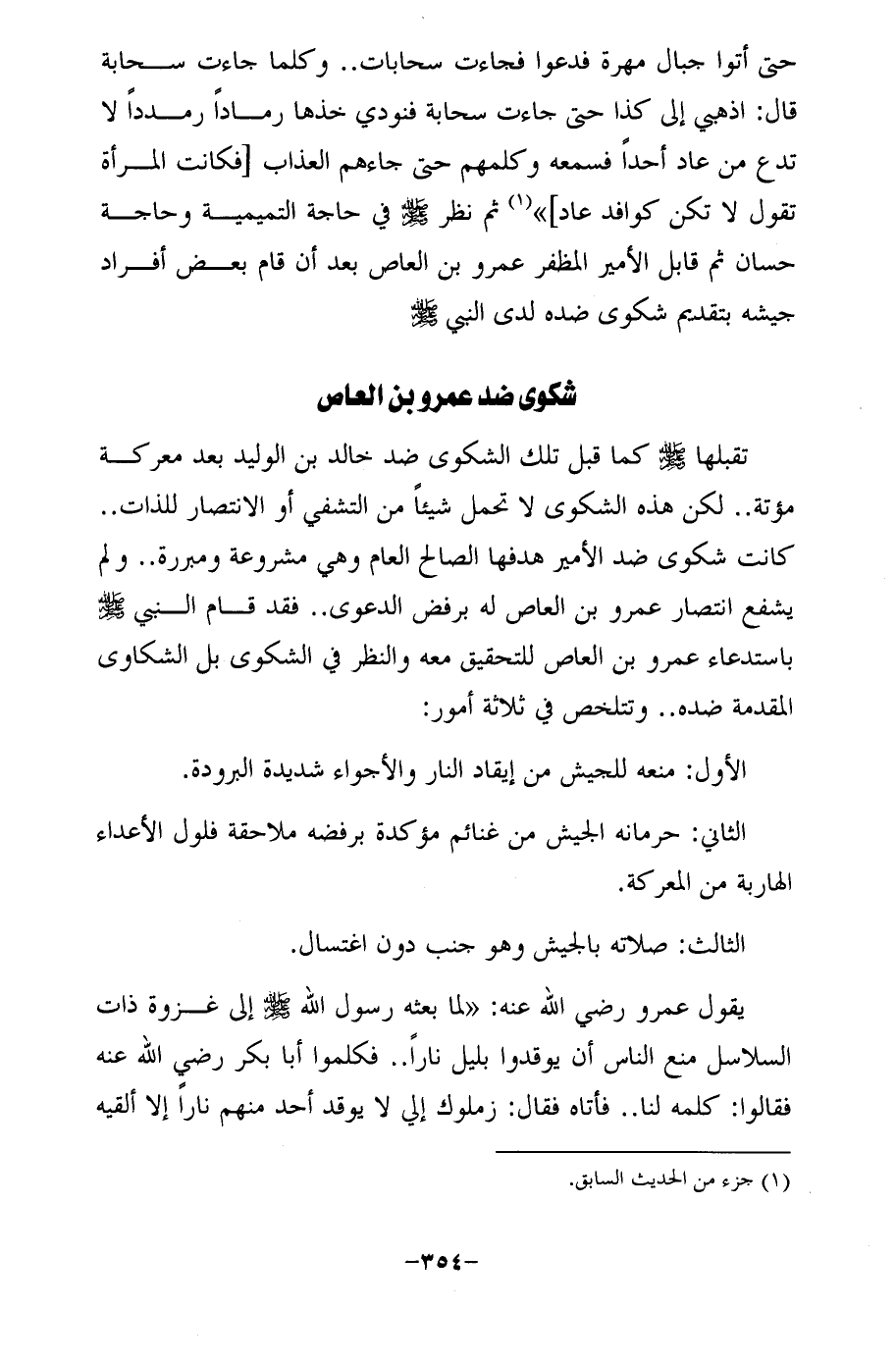تقبلها -صلى الله عليه وسلم- كما قبل تلك الشكوى ضد خالد بن الوليد بعد معركة مؤتة .. لكن هذه الشكوى لا تحمل شيئًا من التشفي أو الانتصار للذات .. كانت شكوى ضد الأمير هدفها الصالح العام وهي مشروعة ومبررة .. ولم يشفع انتصار عمرو بن العاص له برفض الدعوى .. فقد قام النبي -صلى الله عليه وسلم- باستدعاء عمرو بن العاص للتحقيق معه والنظر في الشكوى بل الشكاوى المقدمة ضده .. وتتلخص في ثلاثة أمور: