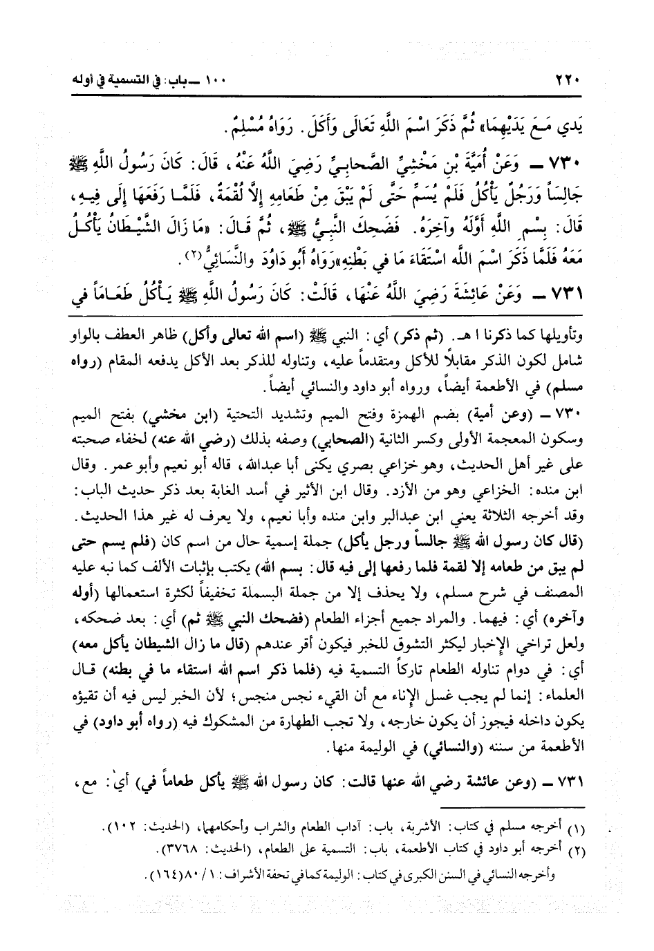 وتأويلها كما ذكرنا اهـ (ثم ذكر) أي النبي (اسم الله تعالى وأكل) ظاهر العطف بالواو شامل لكون الذكر مقابلاً للأكل، ومتقدماً عليه وتناوله للذكر بعد الأكل يدفعه المقام (رواه مسلم) في الأطعمة أيضاً، ورواه أبو داود والنسائي أيضاً.
